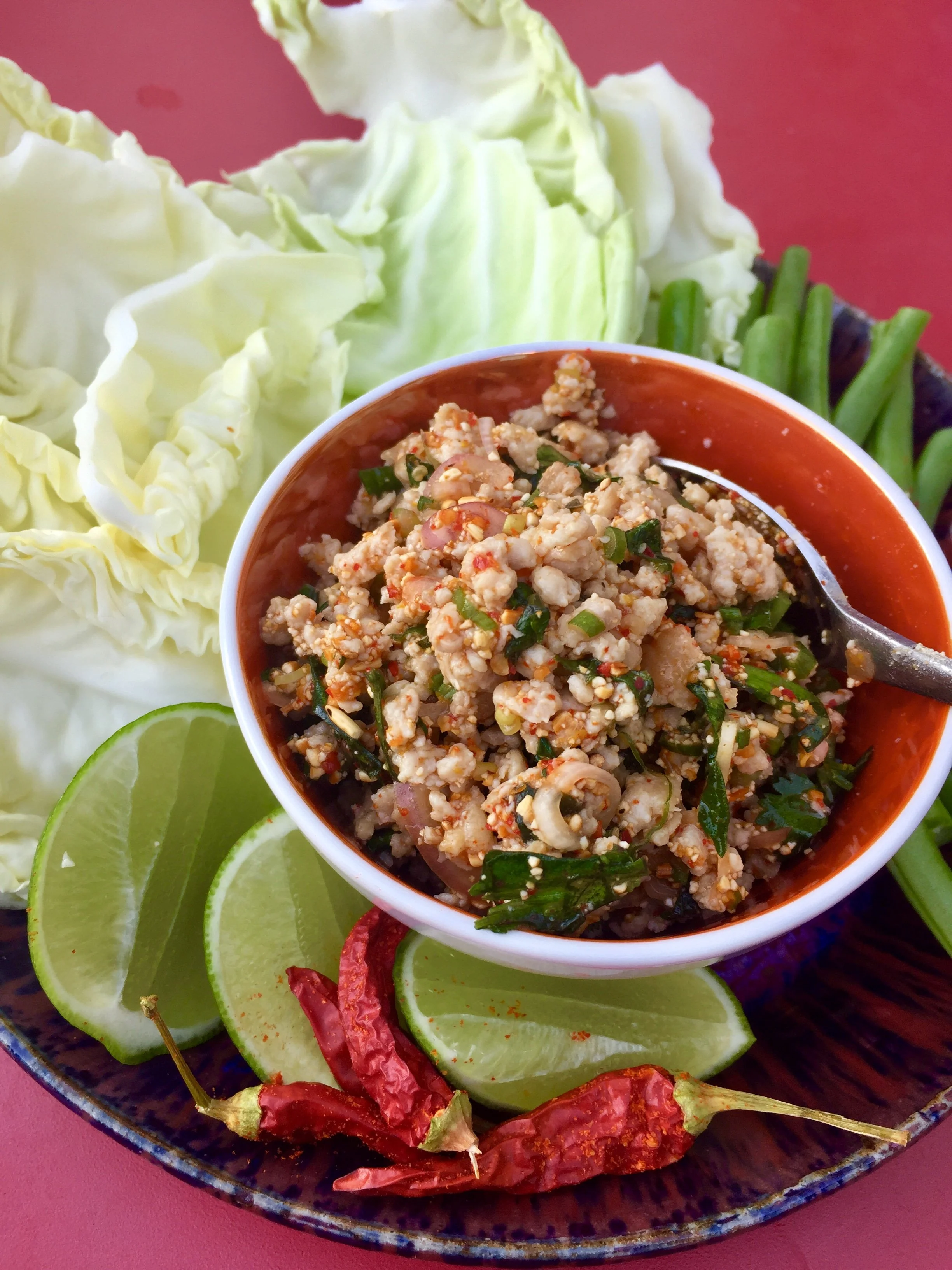Marinated, Roasted Thai Chicken, Green Papaya Salad, Sticky Rice (Gai Yang)